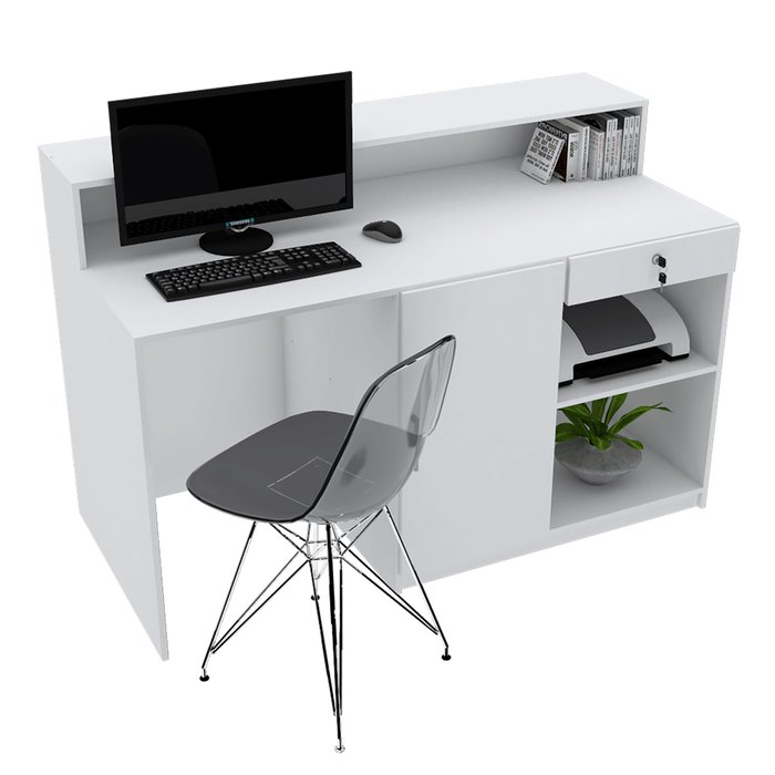1 GAVETA COM FECHADURA E CHAVE, UMA PORTA COM PUXADOR E PASSA FIOS
