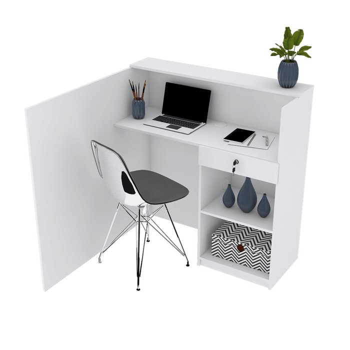 1 GAVETA COM FECHADURA E CHAVE, UMA PORTA COM PUXADOR E PASSA FIOS