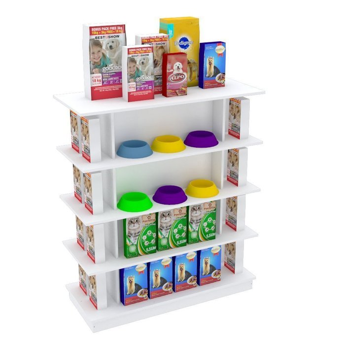 CONTÉM 5 PRATELEIRAS COM EXPOSIÇÃO NOS QUATRO LADOS DO MÓVEL